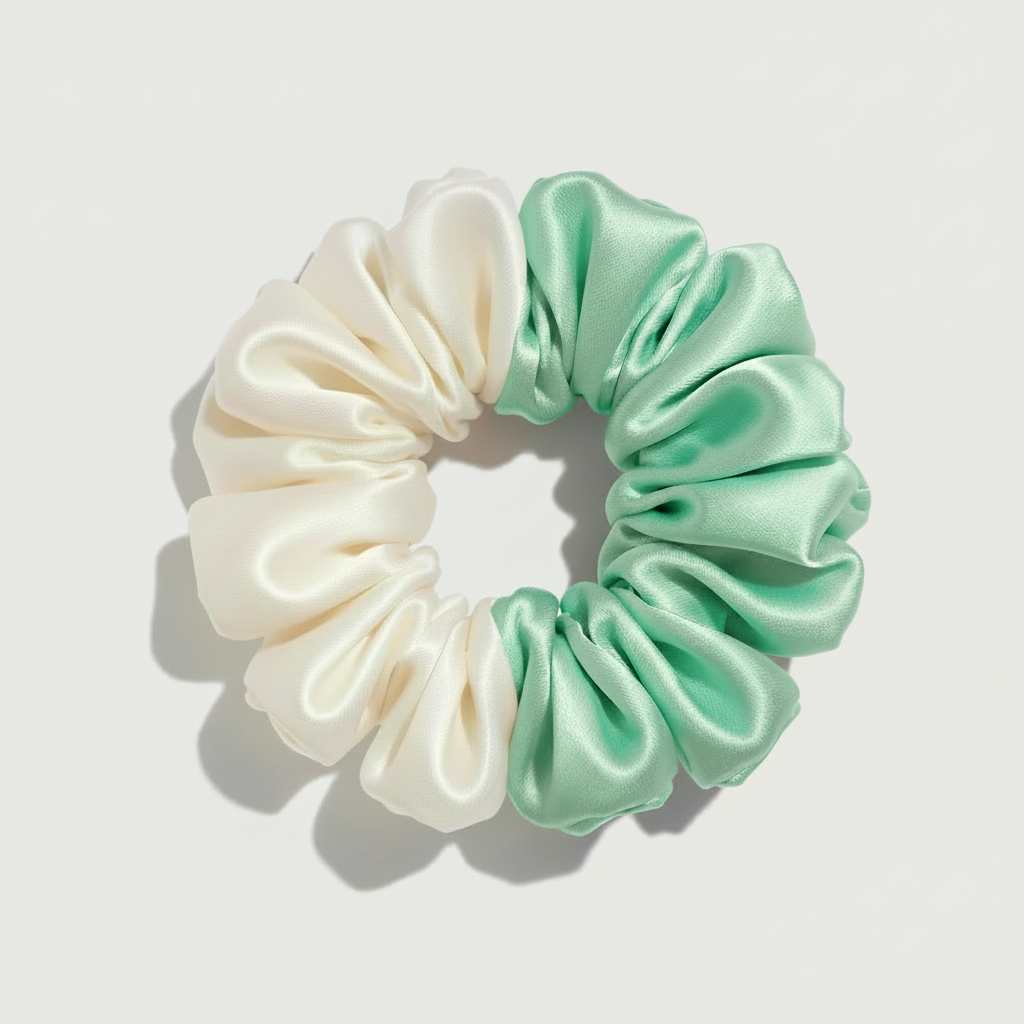 Our Two-Tone Silk Scrunchie is the perfect fusion of elegance and bold style. Crafted from 100% premium silk, this large-size scrunchie features a unique dual-color design that adds a playful twist to any hairstyle.